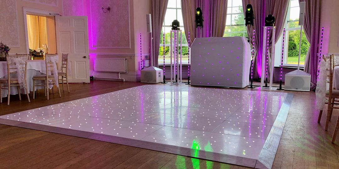 The white starlit dance floor can twinkle below your dancing shoes adding to the party and light show and is a visually stunning addition to any party.