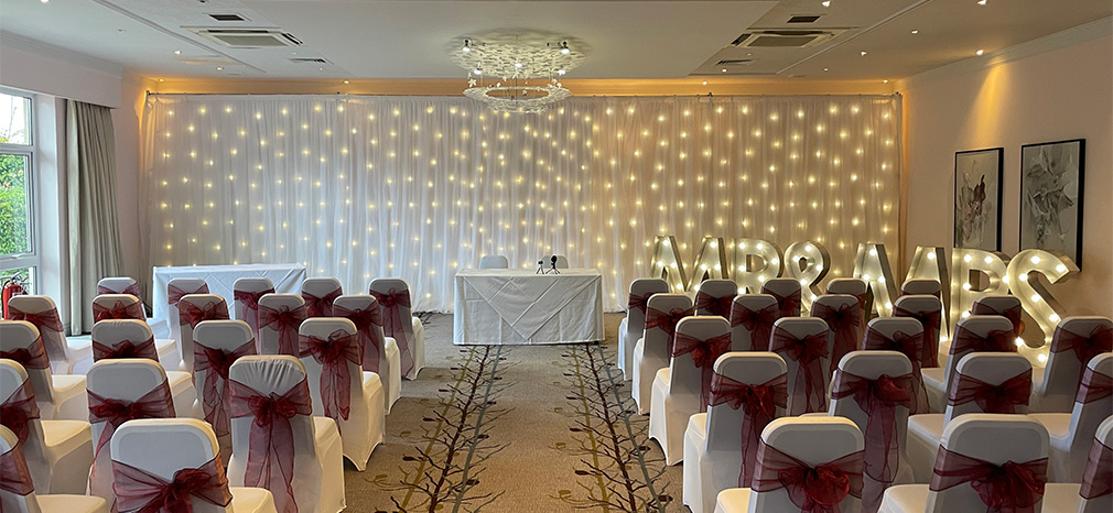 Transform your venue into a truly breathtaking space with our stunning Starlit Drapes. Perfect for framing the registrar at your civil ceremony, highlighting the top table during the wedding breakfast, or creating a dazzling backdrop for your DJ or band, these drapes add instant glamour and elegance to every part of your celebration.